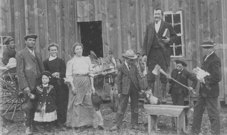 unidentified man standing, Unidentified boy with ax, Simeon Exter II.